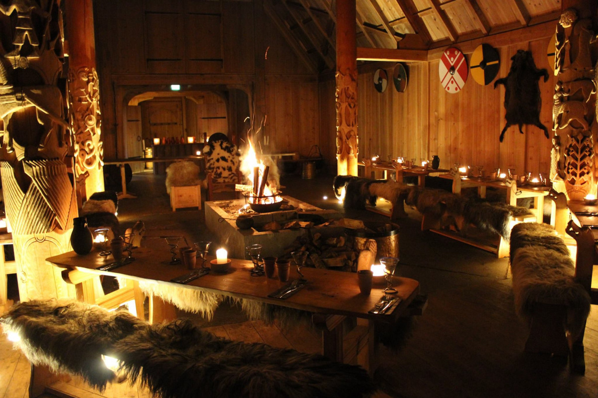 Gildehallen er en rekonstruksjon av en kongelig hallbygning fra vikingtiden. Dette er et flott sted for måltider, teambuilding eller møter. Her kan du på autentisk vis spise vikingmåltider og ha samling med din gruppe etter en lang dag med møter eller teambuilding.